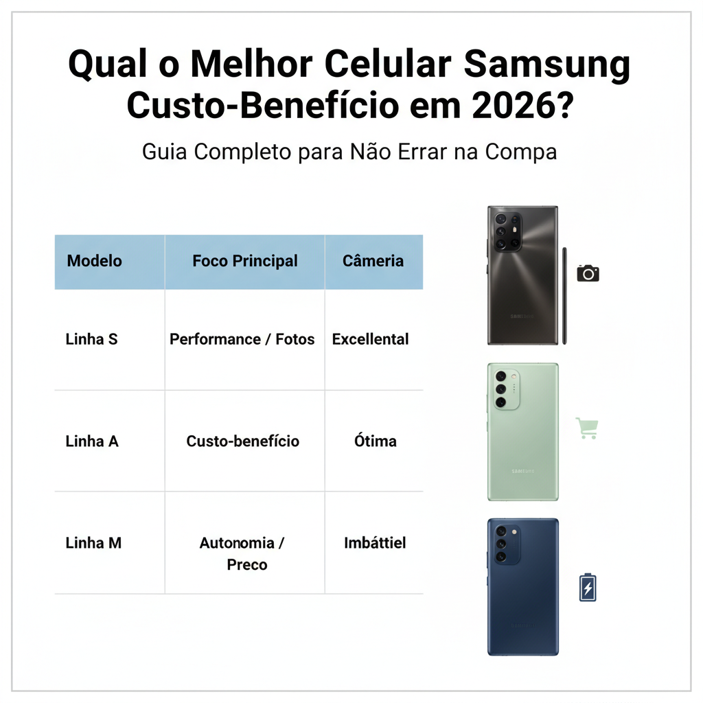 Escolher um celular Samsung hoje em dia é um desafio. Com as linhas S, A e M se renovando todo ano, é fácil acabar pagando caro por recursos que você não usa — ou economizar demais e se arrepender depois.Neste guia, analisamos os modelos que realmente valem o investimento este ano, focando no que importa: câmera, bateria e durabilidade.